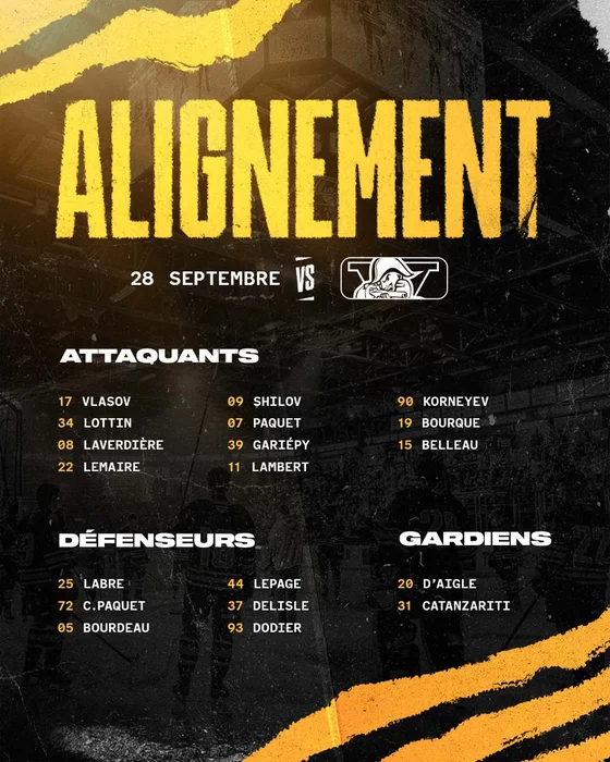 Les absents pour les visiteurs, à part Brunet sont: Brady Flynn, Xavier Sabourin et Zakary Savoie tous 3 blessés. Dans le camp des Voltigeurs Antoine Boudreau, Louis-Félix Bourque et Elliot Lacroix manqueront le duel.